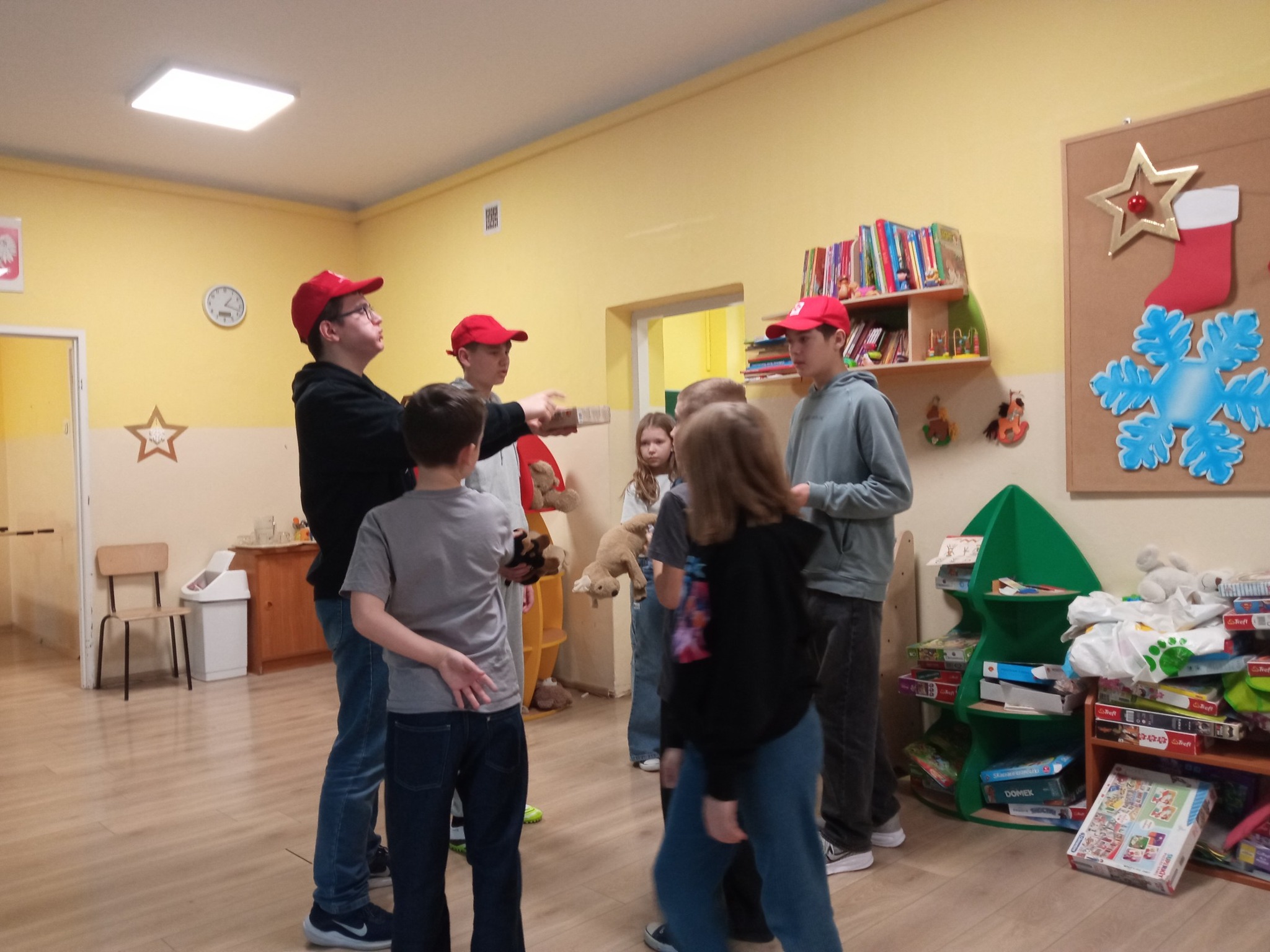 Przychodzą po swoich lekcjach do świetlicy, grają z maluchami w gry planszowe, pomagają czytać i zrozumieć reguły gier, czytają na głos bajki, pomagają budować konstrukcje z klocków, uczą tańca, organizują różne zabawy ruchowe, wymyślają nowe formy współzawodnictwa.