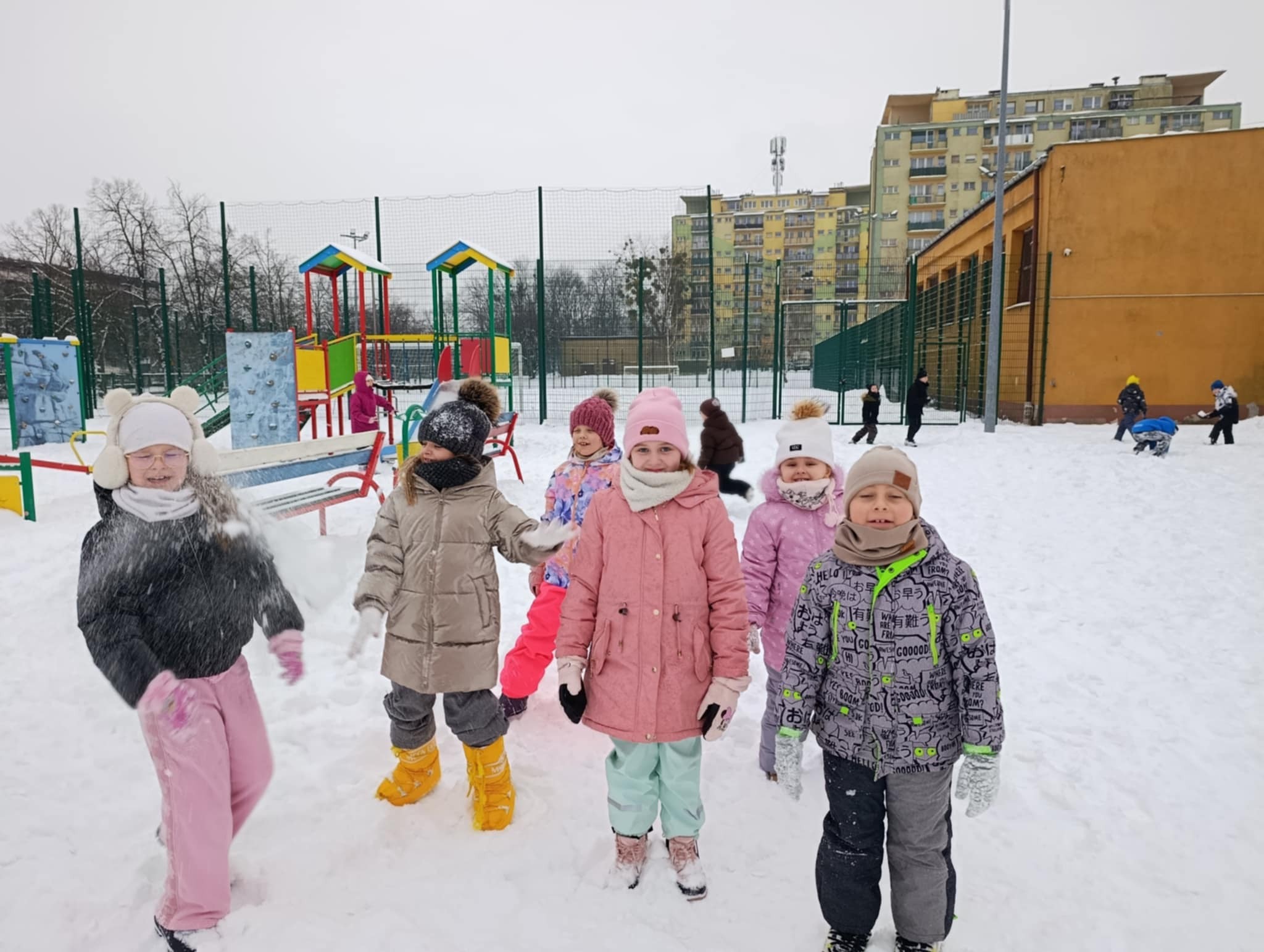 Dorośli w codziennym funkcjonowaniu raczej narzekają na śnieg – bo ślisko, trzeba odśnieżać, kiepskie warunki na drogach, za to dla dzieci jest to prawdziwa frajda. Nasi uczniowie chętnie uczestniczą w zabawach i ćwiczeniach na śniegu. Do najbardziej popularnych i ulubionych zimowych zabaw należą: ślizganie, slalomy, lepienie bałwana. Prawdziwej zimowej zabawy nie byłoby też bez rzucania śnieżkami. Zamiast narzekać na “uroki” zimy, bierzmy przykład z uczniów klasy 1b i 3c.