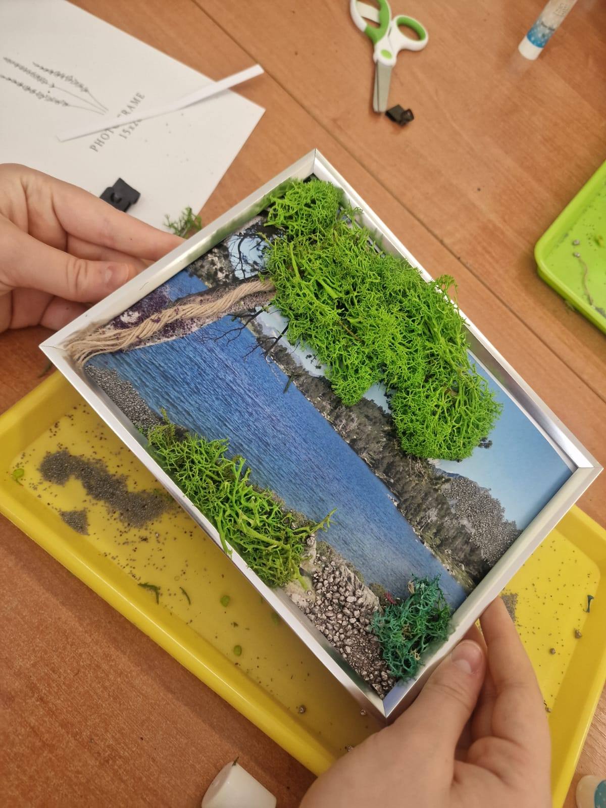 Wzięli udział w warsztatach plastycznych, które prowadzili pracownicy Centrum Edukacyjnego ScienceLab. Temat warsztatów "Żywe obrazy z mchu" . Uczniowie tworzyli własne kompozycje z gałązek, minerałów i porostu (Chrobotka reniferowego).