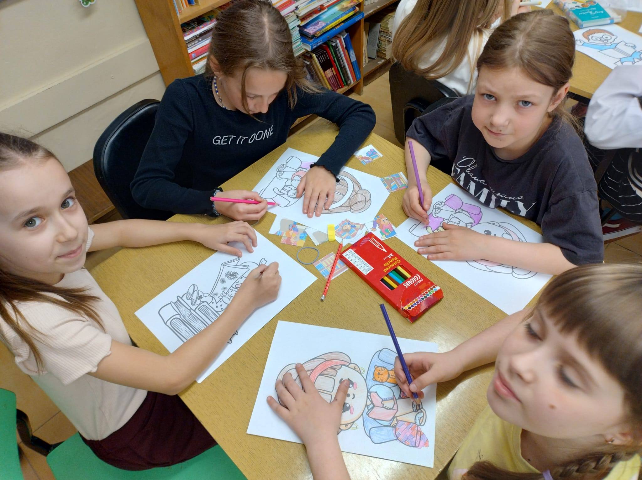 Dla młodszych uczniów z klas 1-3 przygotowano w bibliotece szkolnej książkowe atrakcje - puzzle, memory, zgadywanki i kolorowanki. Zabawy miały nie tylko charakter rozrywkowy, ale również edukacyjny - pomagały rozwijać wyobraźnię, spostrzegawczość oraz zachęcały do sięgania po książki. Nie brakowało kreatywności i dobrej zabawy.