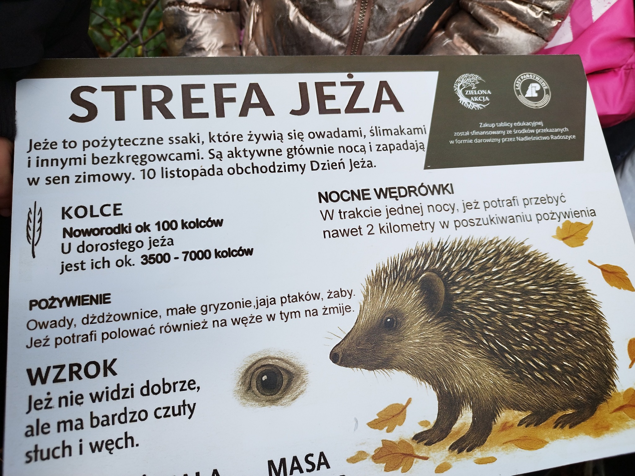 Nadszedł czas hibernacji naszych kolczastych bohaterów, dlatego szczególnie ważne są podstawowe zasady ochrony tych stworzeń. Przypominam, że jeśli znajdziemy jeża, który schronił się w liściach, to pod żadnym pozorem nie zabieramy go nigdzie ze sobą, ani nie przenosimy w inne miejsce. Nasi mali przyjaciele korzystają z takich skrytek, by bezpiecznie przeczekać w nich zimę.