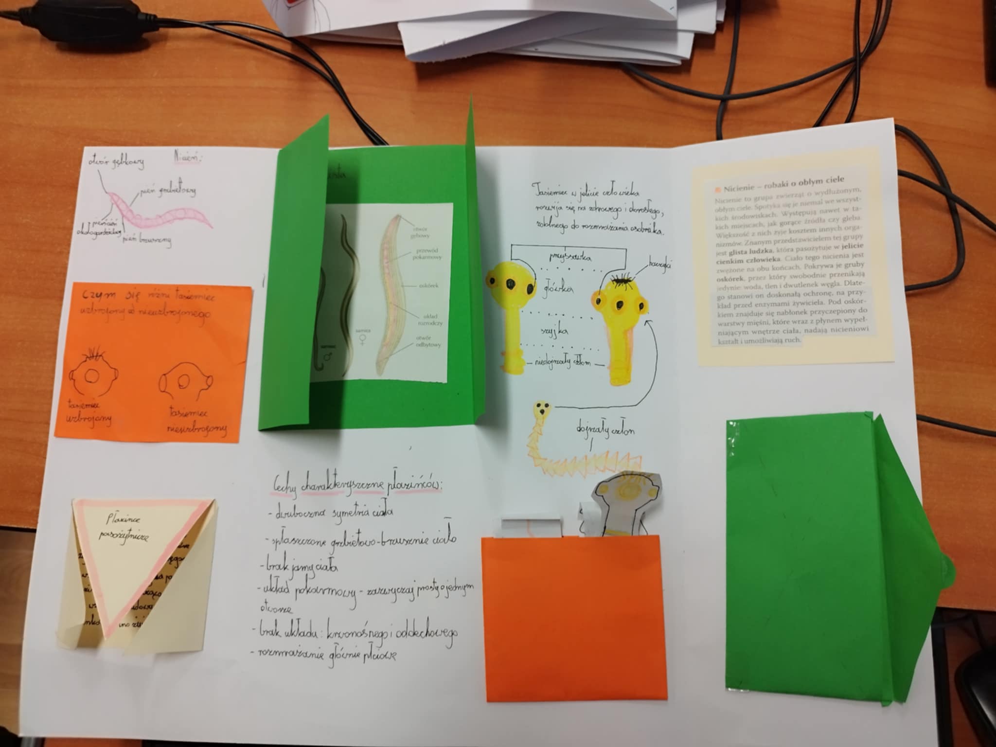 Realizując zadanie nr 1 uczniowie klasy 6b przygotowali lapbooki przedstawiające najważniejsze i najciekawsze informacje na temat płazińców i nicieni. Płazińce i nicienie to grupy zwierząt, wśród których przedstawicielami są organizmy pasożytnicze. Wykorzystując różne źródła informacji zwrócili szczególną uwagę na sposoby zapobiegania zarażeniom tymi pasożytami.