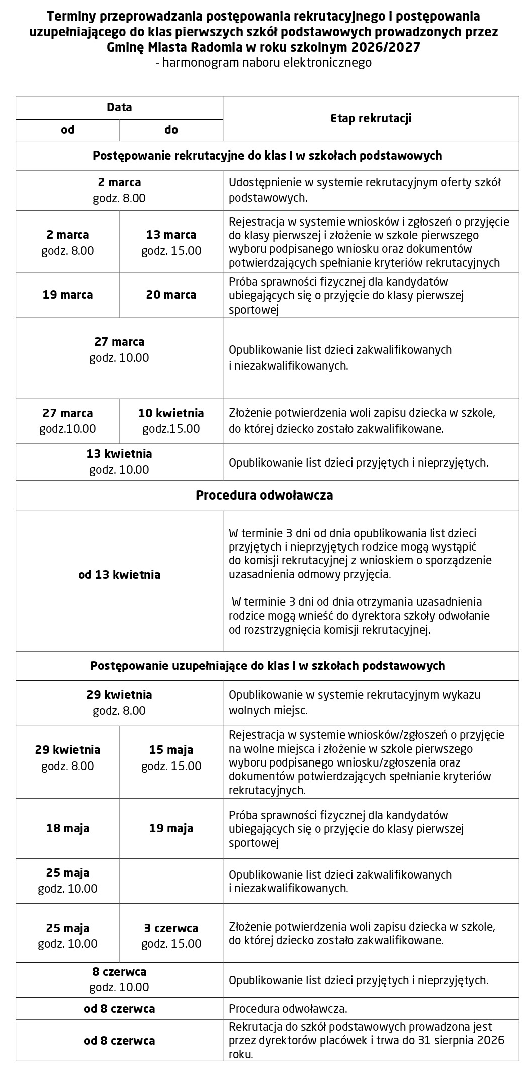 przypominamy, że zbliża się termin rekrutacji na rok szkolny 2026/2027 do pierwszej klasy Publicznej Szkoły Podstawowej Nr 5 im. Marii Dąbrowskiej w Radomiu.