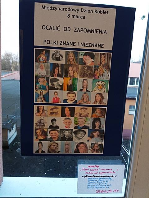Wolontariuszki ze Szkolnego Koła Caritas wykonały gazetkę poświęconą Polkom Znanym i Nieznanych, które zrobiły rzeczy wielkie dla Polski i świata.