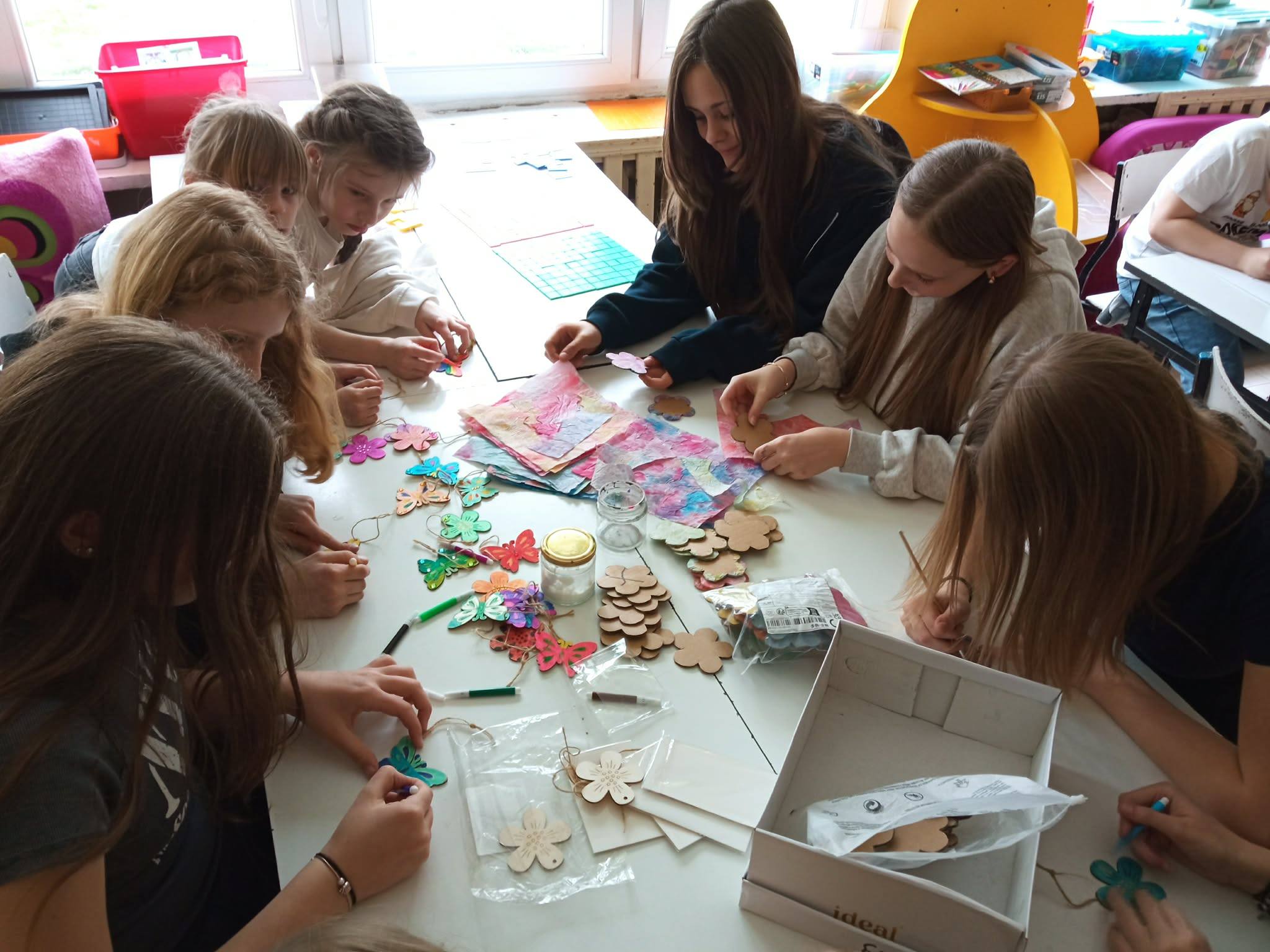 Wolontariusze ze szkolnego koła Caritas pod hasłem "Wiosna już jest z nami" uczestniczyli w zajęciach integracyjnych z uczniami przebywającymi w świetlicy.